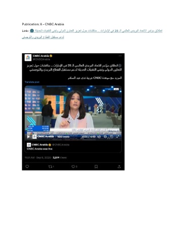 Publication: X – CNBC Arabia Link: ⚫ ةثيدحلا تاينقتلا ينبتو يلودلا نواعتلا زيزعت لوح تاشقانم .. تاراملإا يف 28 ـلا يملاعلا يديربلا داحتلاا رمتؤم قلاطنا يتسجوللاو يديربلا عاطقلا لبقتسم معدل