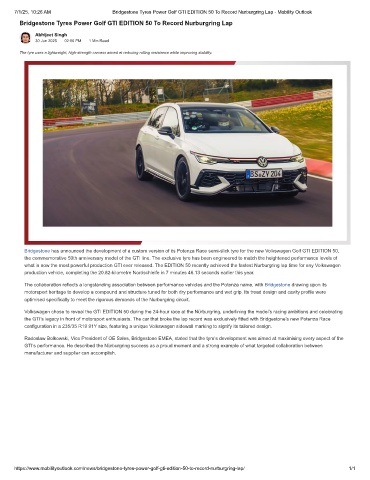 7/1/25, 10:26 AM Bridgestone Tyres Power Golf GTI EDITION 50 To Record Nurburgring Lap - Mobility Outlook