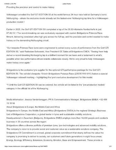 Media information: Jessica Vandenbruggen, PR & Communications Manager, Bridgestone EMEA: +32 489