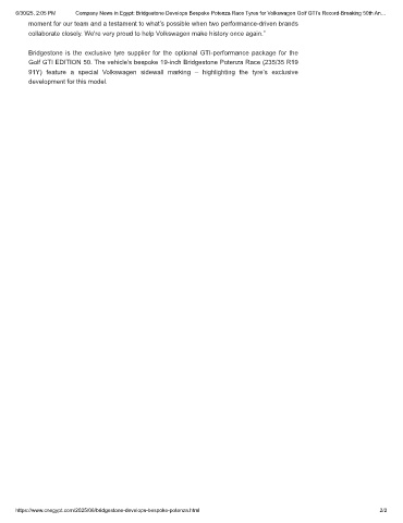 6/30/25, 2:05 PM Company News in Egypt: Bridgestone Develops Bespoke Potenza Race Tyres for Volkswagen Golf GTI’s Record-Breaking 50th An…