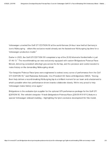 6/30/25, 2:06 PM Bridgestone Develops Bespoke Potenza Race Tyres for Volkswagen Golf GTI’s Record-Breaking 50th Anniversary Model - Middle …
