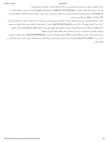 ةدﻣ لﻼﺧ فﯾﻼﺷدروﻧ ﺔﺑﻠﺣ ﻰﻠﻋ ًارﺗﻣوﻠﯾﻛ 20.82 لوطﺑ ﺔﻔﻟ مﺎﻣﺗإ نﻣ Golf GTI EDITION 50Iةرﺎﯾﺳ تﻧﻛﻣﺗ ،ﻲﻟﺎﺣﻟا مﺎﻌﻟا نﻣ ﻖﺑﺎﺳ ٍتﻗو ﻲﻓو