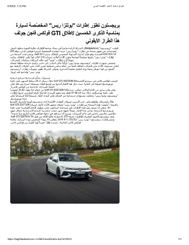 ً اﺮﺘﻣﻮﻠﯿﻛ 20.82 لﻮﻄﺑ ﺔﻔﻟ مﺎﻤﺗإ ﻦﻣ Golf GTI EDITION 50Iةرﺎﯿﺳ ﺖﻨﻜﻤﺗ ،ﻲﻟﺎﺤﻟا مﺎﻌﻟا ﻦﻣ ﻖﺑﺎﺳ ٍﺖﻗو ﻲﻓو