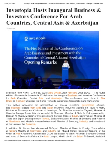 3/4/25, 3:40 PM Investopia Hosts Inaugural Business & Investors Conference For Arab Countries, Central Asia & Azerbaijan | Pakistan Point