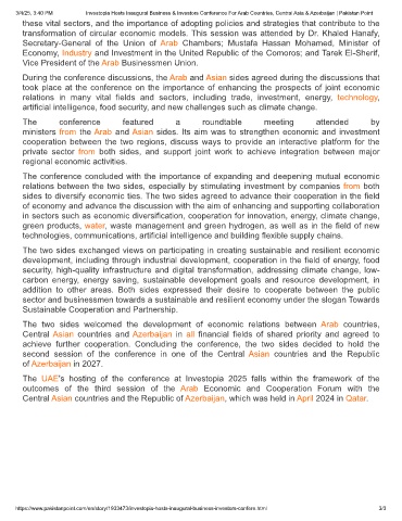 3/4/25, 3:40 PM Investopia Hosts Inaugural Business & Investors Conference For Arab Countries, Central Asia & Azerbaijan | Pakistan Point