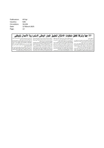 Publication: Al Fajr Country: UAE Circulation: 34,596 Date: 13 March 2025 Page: 13