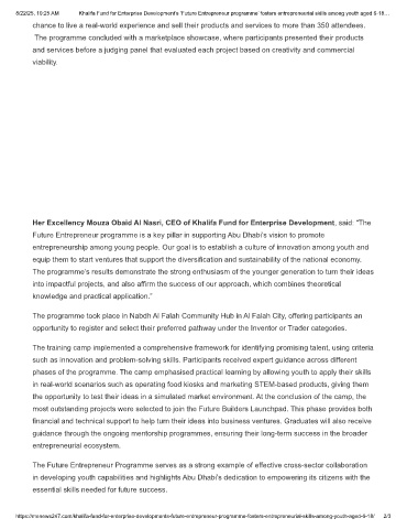8/22/25, 10:25 AM Khalifa Fund for Enterprise Development’s ‘Future Entrepreneur programme’ fosters entrepreneurial skills among youth aged 6-18…
