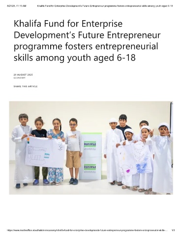8/21/25, 11:15 AM Khalifa Fund for Enterprise Development’s Future Entrepreneur programme fosters entrepreneurial skills among youth aged 6-18