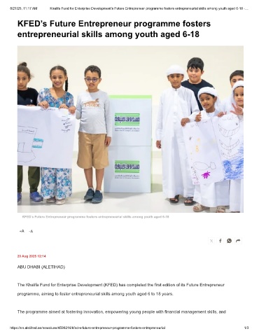 8/21/25, 11:17 AM Khalifa Fund for Enterprise Development’s Future Entrepreneur programme fosters entrepreneurial skills among youth aged 6-18 -…