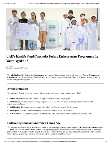 8/21/25, 11:18 AM UAE's Khalifa Fund Concludes Future Entrepreneur Programme for Youth Aged 6-18 - MENA Startup DIgest