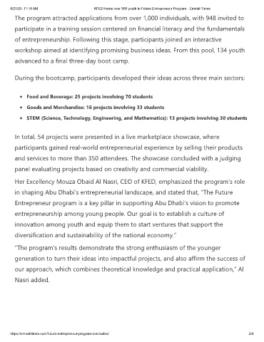 8/21/25, 11:18 AM KFED trains over 900 youth in Future Entrepreneur Program - Emirati Times