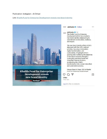 Publication: Instagram – Al Etihad Link: Khalifa Fund for Enterprise Development reveals new brand identity