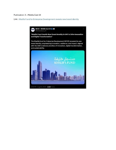 Publication: X – Middle East 24 Link: Khalifa Fund for Enterprise Development reveals new brand identity