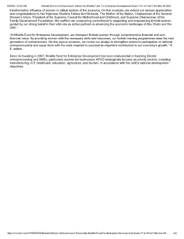 8/29/25, 10:56 AM Emirati Women Entrepreneurs Trained By Khalifa Fund For Enterprise Development Soars 71% In First 7 Months Of 2025