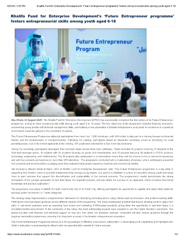 8/25/25, 5:09 PM Khalifa Fund for Enterprise Development's ‘Future Entrepreneur programme' fosters entrepreneurial skills among youth aged 6-18