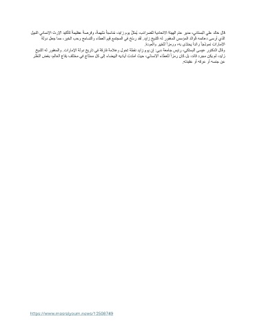 ليبنلا ينا سنلإا ثرلإا ديكأتل ةميظع ةصرفو ،ةمهلُم ةبسانُم ،دياز موي ُلثمُي ،بئارضلل ةيداحتلاا ةئيهلا ماع ريدم ،يناتسبلا يلع دلاخ لاق