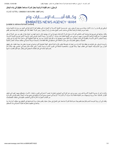 3/10/25, 10:40 AM UAE News - نطوﻟا ءﺎﻧﺑ ﻲﻓ ً ﺎﯾﻘﯾﻘﺣ ً ﺎﻣھﺎﺳﻣ ةأرﻣﻟا لﻌﺟ ةدﯾﺷرﻟا ةدﺎﯾﻘﻟا مﻋد :ﻲﺛﯾﻣرﻟا - تارﺎﻣﻹا رﺎﺑﺧأ