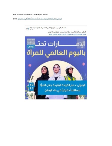Publication: Facebook - Al Barjeel News Link: نطولا ءانب يف ًايقيقح ًامهاسم ةأرملا لعج ةديشرلا ةدايقلا معد :يثيمرلا