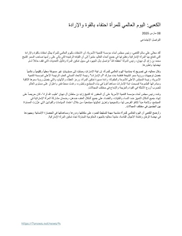 ًايملاعو ًايميلقإو ًايلحم ةقوبسم ريغ ٍتايوتسم ىلإ تلصو تاراملإا ةنبا نإ ،ةأرملل يملاعلا مويلا ةبسانمب هل حيرصت يف ،هيلاعم لاقو