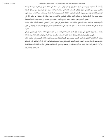 ﺔمﺋﺎﻘﻟا ﺔيعمتجمﻟا ﺔﻓﺎﻘثﻟاو مﻬﻧﺎطوأ ﻲﻓ ﺔﻣادتسمﻟا ﺔيمنتﻟا زيزﻌﺗو مﻬﺗﺎﻌمتجﻣ مدﻘﺗو ﺔضﻬﻧ ﻞﺟأ نﻣ مﻬسﻔﻧأ ﻩﺎجﺗ دﺎجﻟا مﻬﻣازتﻟا ﻰﻠﻋ ً ﺎيﺣ