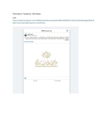 Publication: Facebook- UAE News Link: https://www.facebook.com/UAENewsArabic/posts/pfbid0Koz6ZW9UY1szZLo2tcjSqA3wrgjrYBUm9 fgibCdUqi5GpAZgKUrgdrsDuUG9Wkbgl