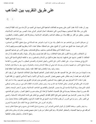 رﺎﺑﺗﻋﺎﺑ ،ةدﺣوﻟا رﺻاوأ زﯾزﻌﺗو ،ﺔﯾﻣﻼﺳﻹا بھاذﻣﻟا نﯾﺑ مھﺎﻔﺗﻟاو لﺻاوﺗﻟا روﺳﺟ ءﺎﻧﺑ ﻰﻟإ ةوﻋدﻟﺎﺑ ﺔﻟودﻟا ﺔﯾؤر دّﺳﺟ يذﻟا ،مﻠﺳﻠﻟ
