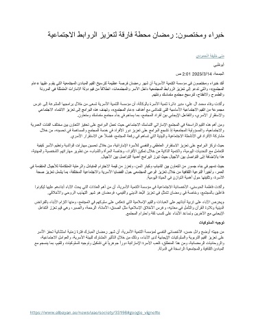 ةيعامتجلاا طباورلا زيزعتل ةقراف ةطحم ناضمر :نوصتخمو ءاربخ