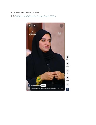 Publication: YouTube – Baynounah TV Link: " ريثك ٍ ناعم هل ةياعرلا يقلتل مهضفرو .."بح ىلإ جاتحي نسلا رابك ةياعر ة