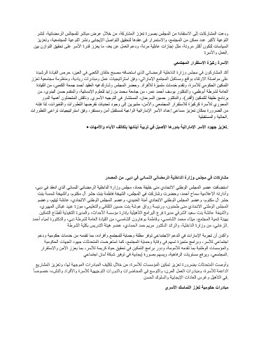 ةيموكحلا تاهجلا دوهج تاثدحتملا تضرعتسا امك ،عمتجملا ةيامحو ةياقو يف مهست ةزيمتم جماربو ،رسﻸل يعامتجا