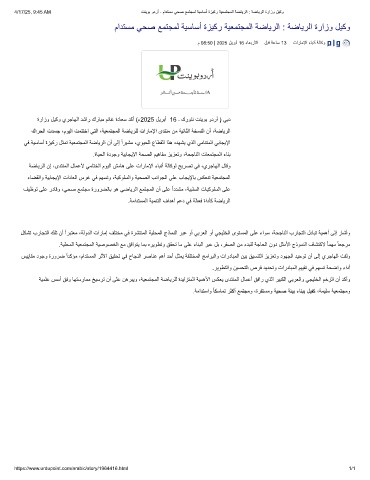 4/17/25, 9:45 AM تﻧﯾوﺑ ودرأ - مادﺗﺳﻣ ﻲﺣﺻ ﻊﻣﺗﺟﻣﻟ ﺔﯾﺳﺎﺳأ ةزﯾﻛر ﺔﯾﻌﻣﺗﺟﻣﻟا ﺔﺿﺎﯾرﻟا : ﺔﺿﺎﯾرﻟا ةرازو لﯾﻛو
