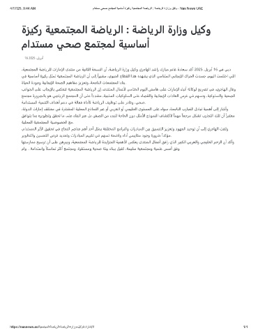 4/17/25, 9:44 AM مادﺗﺳﻣ ﻲﺣﺻ ﻊﻣﺗﺟﻣﻟ ﺔﯾﺳﺎﺳأ ةزﯾﻛر ﺔﯾﻌﻣﺗﺟﻣﻟا ﺔﺿﺎﯾرﻟا : ﺔﺿﺎﯾرﻟا ةرازو لﯾﻛو - Nas News UAE