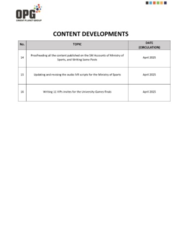 15 Updating and revising the audio IVR scripts for the Ministry of Sports April 2025