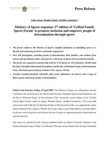 • The forum was organised in partnership with the UAE Sports for All Federation, Sheikh Saud