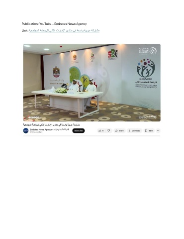 Publication: YouTube – Emirates News Agency Link: ةيعمتجملا ةضايرلل يناثلا تاراملإا ىدتنم يف ةعساو ةيبرع ةكراشم