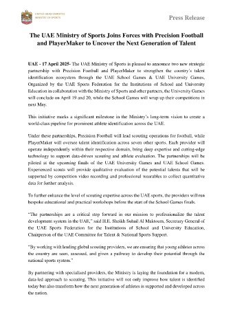 The UAE Ministry of Sports Joins Forces with Precision Football