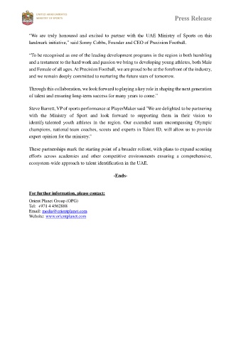 “We are truly honoured and excited to partner with the UAE Ministry of Sports on this