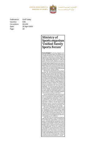 Publication: Gulf Today Country: UAE Circulation: 49,500 Date: 26 April 2025 Page: 20