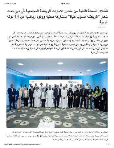 تارﺎﻣﻹا دﺎﺣﺗا نﻣ مﯾظﻧﺗﺑ كﻟذو ،ﺔﯾﻌﻣﺗﺟﻣﻟا ﺔﺿﺎﯾرﻠﻟ تارﺎﻣﻹا ىدﺗﻧﻣ نﻣ ﺔﯾﻧﺎﺛﻟا ﺔﺧﺳﻧﻟا لﺎﻣﻋأ ،ﻲﺑدﺑ ﺔﺿﺎﯾرﻟا ةرازو رﻘﻣ ﻲﻓ ،ءﺎﺛﻼﺛﻟا موﯾﻟا تﻘﻠطﻧا