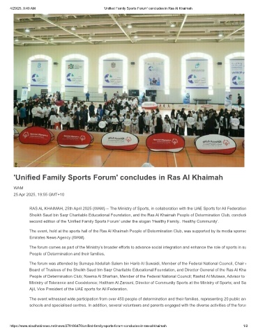4/29/25, 9:49 AM 'Unified Family Sports Forum' concludes in Ras Al Khaimah