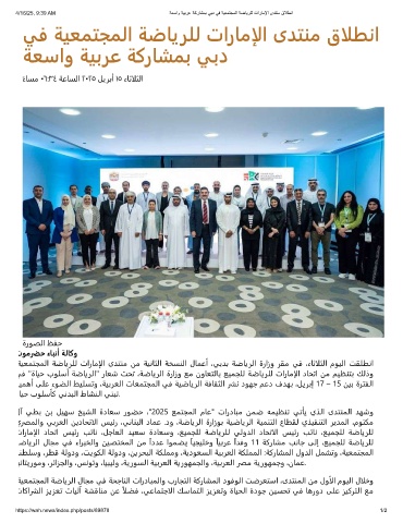 ﺔﻴﻌﻤﺘﺠﻤﻟا ﺔﺿﺎﻳﺮﻠﻟ تارﺎﻣإلا ىﺪﺘﻨﻣ ﻦﻣ ﺔﻴﻧﺎﺜﻟا ﺔﺨﺴﻨﻟا لﺎﻤﻋأ ،ﻲﺑﺪﺑ ﺔﺿﺎﻳﺮﻟا ةرازو ﺮﻘﻣ ﻲﻓ ،ءﺎﺛالﺜﻟا مﻮﻴﻟا ﺖﻘﻠﻄﻧا