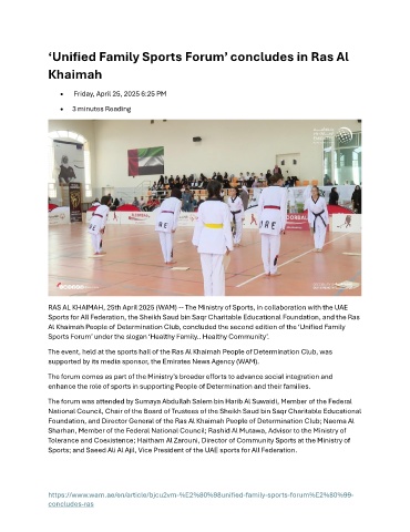 ‘Unified Family Sports Forum’ concludes in Ras Al