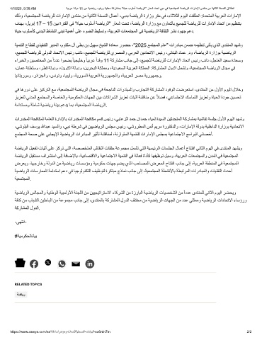 4/16/25, 9:38 AM ﺔﯾﺑرﻋ ﺔﻟود 11 نﻣ ﺔﯾﺿﺎﯾر دوﻓوو ﺔﯾﻠﺣﻣ ﺔﻛرﺎﺷﻣﺑ "ةﺎﯾﺣ بوﻠﺳأ ﺔﺿﺎﯾرﻟا" رﺎﻌﺷ تﺣﺗ ﻲﺑد ﻲﻓ ﺔﯾﻌﻣﺗﺟﻣﻟا ﺔﺿﺎﯾرﻠﻟ تارﺎﻣﻹا ىدﺗﻧﻣ نﻣ ﺔﯾﻧﺎﺛﻟا ﺔﺧﺳﻧﻟا قﻼطﻧا
