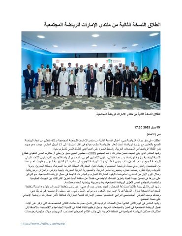 ةضايرلا داحتا نم ميظنتب كلذو ،ةيعمتجملا ةضايرلل تاراملإا ىدتنم نم ةيناثلا ةخسنلا لامعأ ،يبدب ةضايرلا ةرازو رقم يف ،تقلطنا