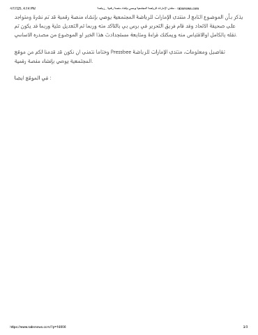 ﺪﺟاﻮﺘﻣو ةرشﻧ ﻢﺗ ﺪﻗ ﺔﻴﻤﻗر ﺔﺼﻨﻣ ءﺎﺸﻧﺈﺑ يصﻮﻳ ﺔﻴﻌﻤﺘﺠﻤﻟا ﺔﺿﺎﻳﺮﻠﻟ تارﺎﻣإلا ىﺪﺘﻨﻣ ـﻟ ﻊﺑﺎﺘﻟا عﻮﺿﻮﻤﻟا نﺄـﺑ ﺮﻛﺬﻳ