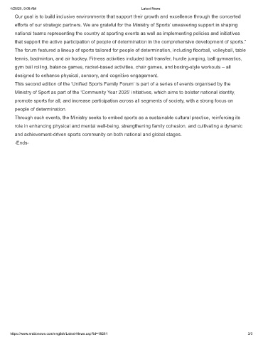 Ministry of Sport as part of the ‘Community Year 2025’ initiatives, which aims to bolster national identity,