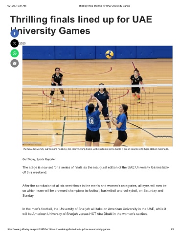 4/21/25, 10:34 AM Thrilling finals lined up for UAE University Games