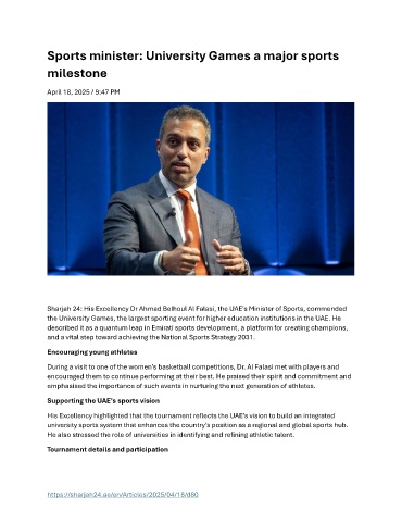 the University Games, the largest sporting event for higher education institutions in the UAE. He