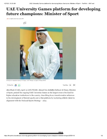 4/21/25, 10:35 AM UAE University Games platform for developing future champions: Minister of Sport – ThePrint – ANIFeed