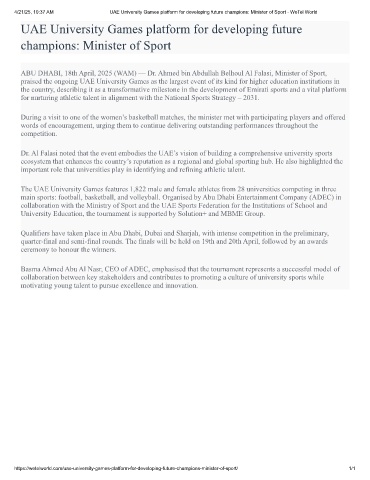 4/21/25, 10:37 AM UAE University Games platform for developing future champions: Minister of Sport - WeTel World