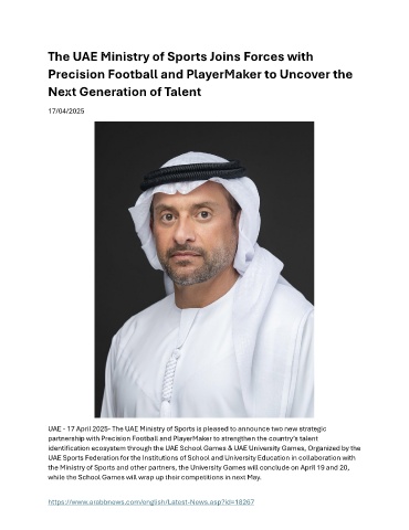UAE - 17 April 2025- The UAE Ministry of Sports is pleased to announce two new strategic